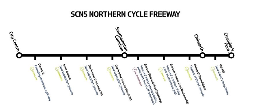 The SCN5 Northern Cycle Freeway is an important part of the wider Southampton Cycle Network (SCN). It provides a dedicated cycling route for people travelling between Southampton city centre, the Common and the University of Southampton.