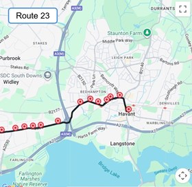 Frequent Stagecoach bus service 23 supports pupils at Warblington School. This service stops at the bus stop Forty Acres on the Havant Road just outside of Harbour Place. The bus stops at Havant Bus Station which is a 0.9 mile / 17 minute onward walk to Warblington School.