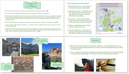 - Create a report about your active or sustainable journey – whether it’s new or part of your regular routine.