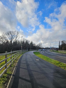 There are now several shared paved paths, to be used by both pedestrians and cyclists, running along Whiteley Way, Curbridge Way and Bluebell Way.